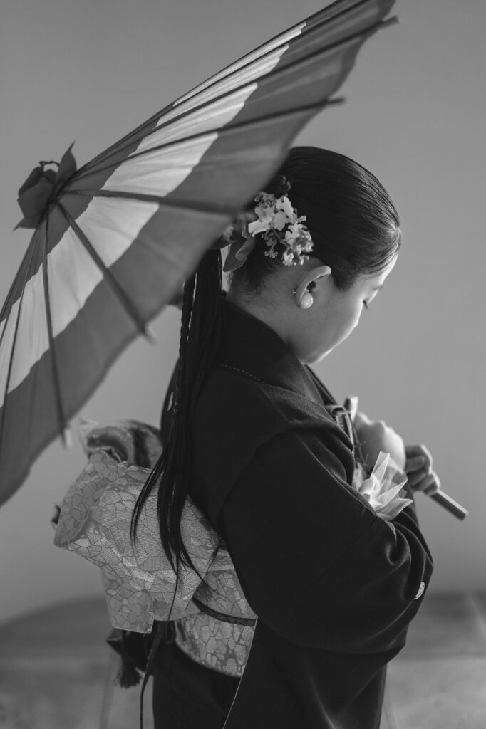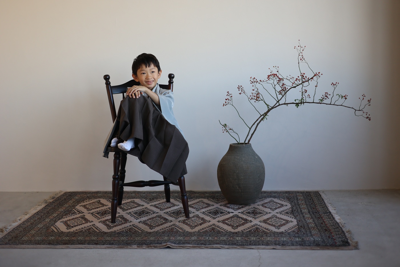 男の子の衣装はお持ち込みになります。サイズが合えば、スタジオの着物レンタルも可能です。